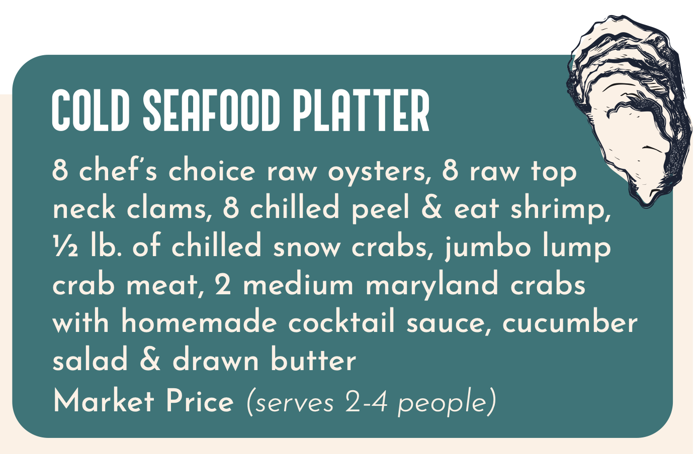 Samantha and I shared the Cold Seafood Platter, which consists of —