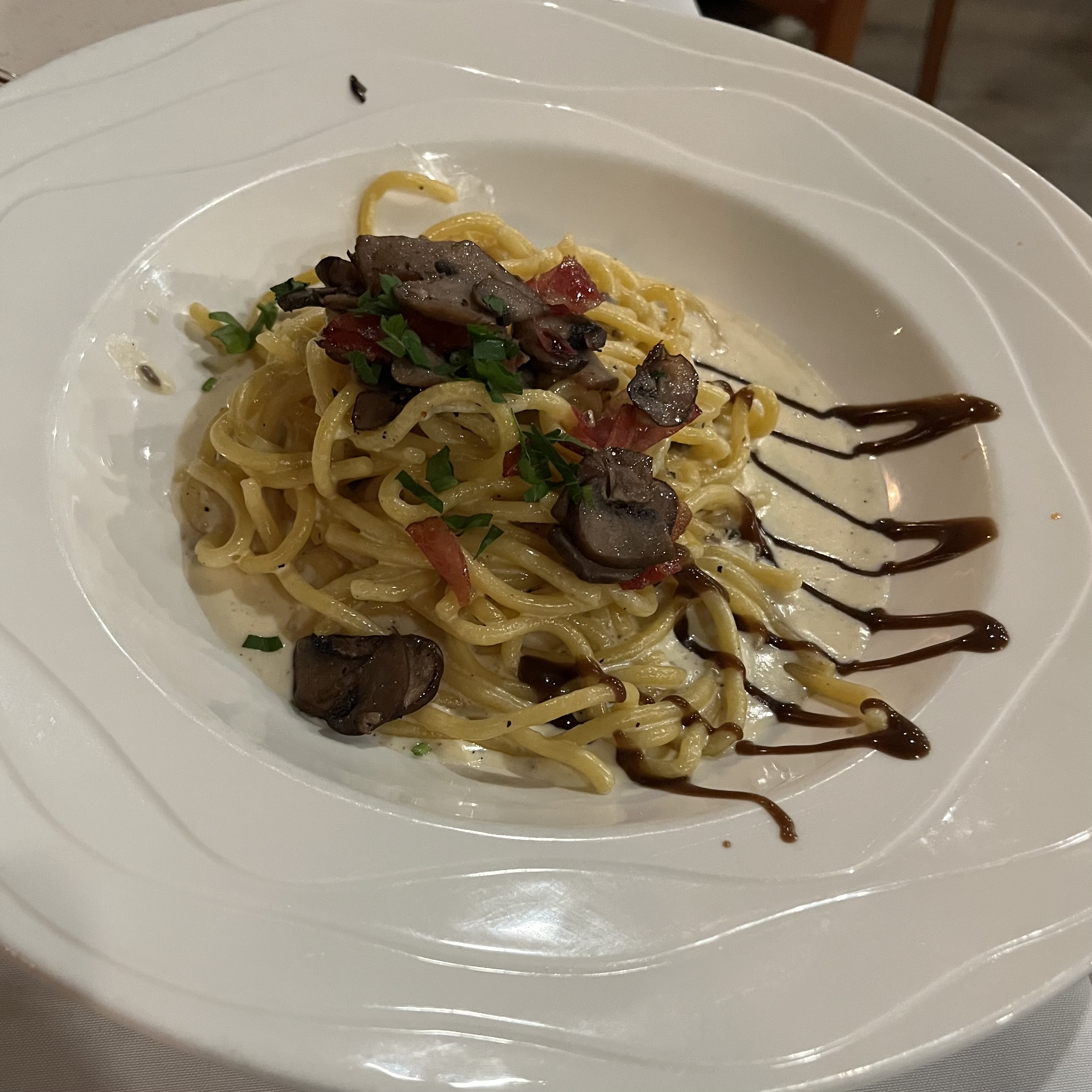 homemade spaghetti in a talesgio cheese sauce with truffles,